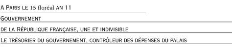 <h3 data-kind="letter-signature" style="text-align: right; font-size: 1em; font-weight: normal">Ce 13 floréal an 11</h3>
