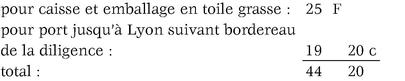 Votre Excellence me prévenant que les avances pour le port, l'encaissement et l'emballage de ce buste, dont elle me charge, me seront promptement remboursées, j'ai l'honneur de mettre sous ses yeux la note de ces frais; ils consistent, savoir :