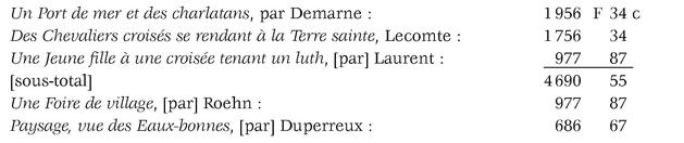 4° en tableaux de peintres français acquis aux expositions de l'an 13, 1806 et 1808. Savoir :