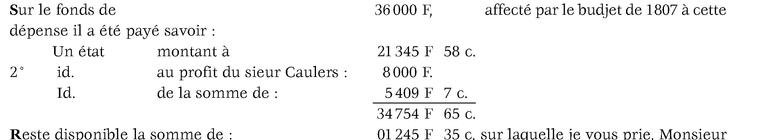 J'ai l'honneur de vous adresser par triplicata un état de payement à faire à MM. Michaud, Fouque et Subert pour travaux et fournitures relatifs à l'encadrement et restauration des statues et tableaux de la conquête de 1806.