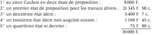J'ai l'honneur de vous adresser un état de proposition de payement montant à soixante-quinze francs quatre-vingt-dix centimes, qui complètent les 36 000 F accordés en 1807 pour la restauration des monuments conquis par la Grande Armée et dont suit l'indication des sommes acquittées.